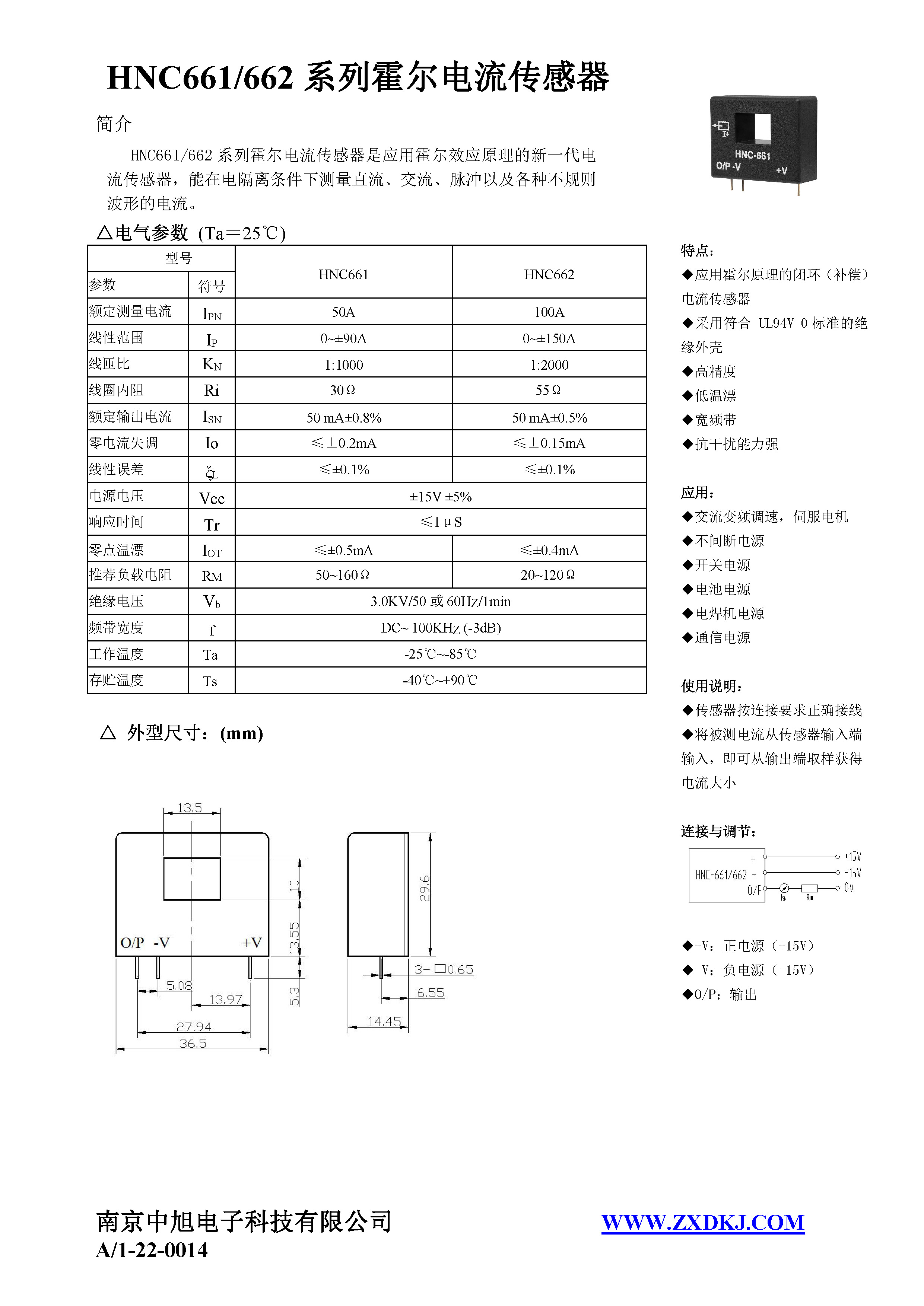 HNC-661系列霍爾電流傳感器是應(yīng)用霍爾效應(yīng)原理的新一代電流傳感器,能在電隔離條件下測(cè)量直流、交流、脈沖以及各種不規(guī)則波形的電流。